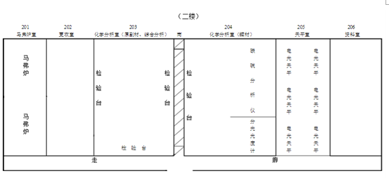 4.203和204较宽敞,作为化学分析室使用。205环境最优,作为天平室使用。201临近还原车间和道路,布置马弗炉室。