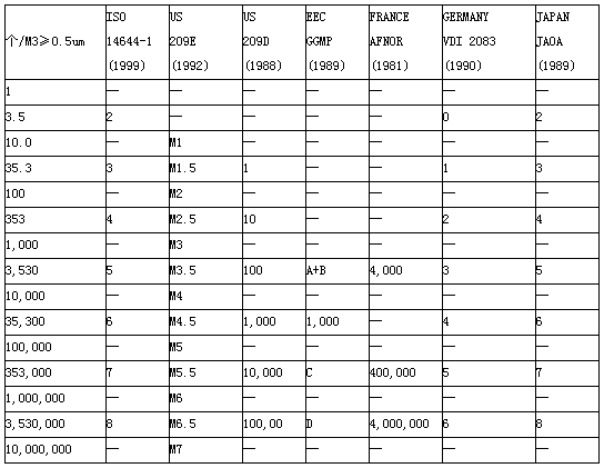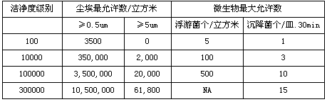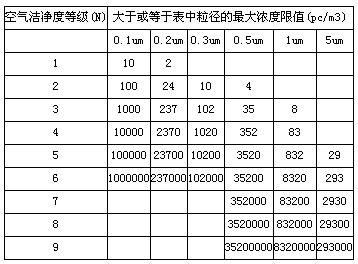 无尘室洁净度参照标准