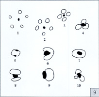 例如,1-10示为不同类型气泡与菌落的连接情况,所有菌落应计数. |