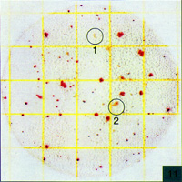 Count=83因为在petrifilm AC测试片上菌落是红色的,你会和不透明的不规则形状的事物颗粒区分开,见圆圈1和2. |