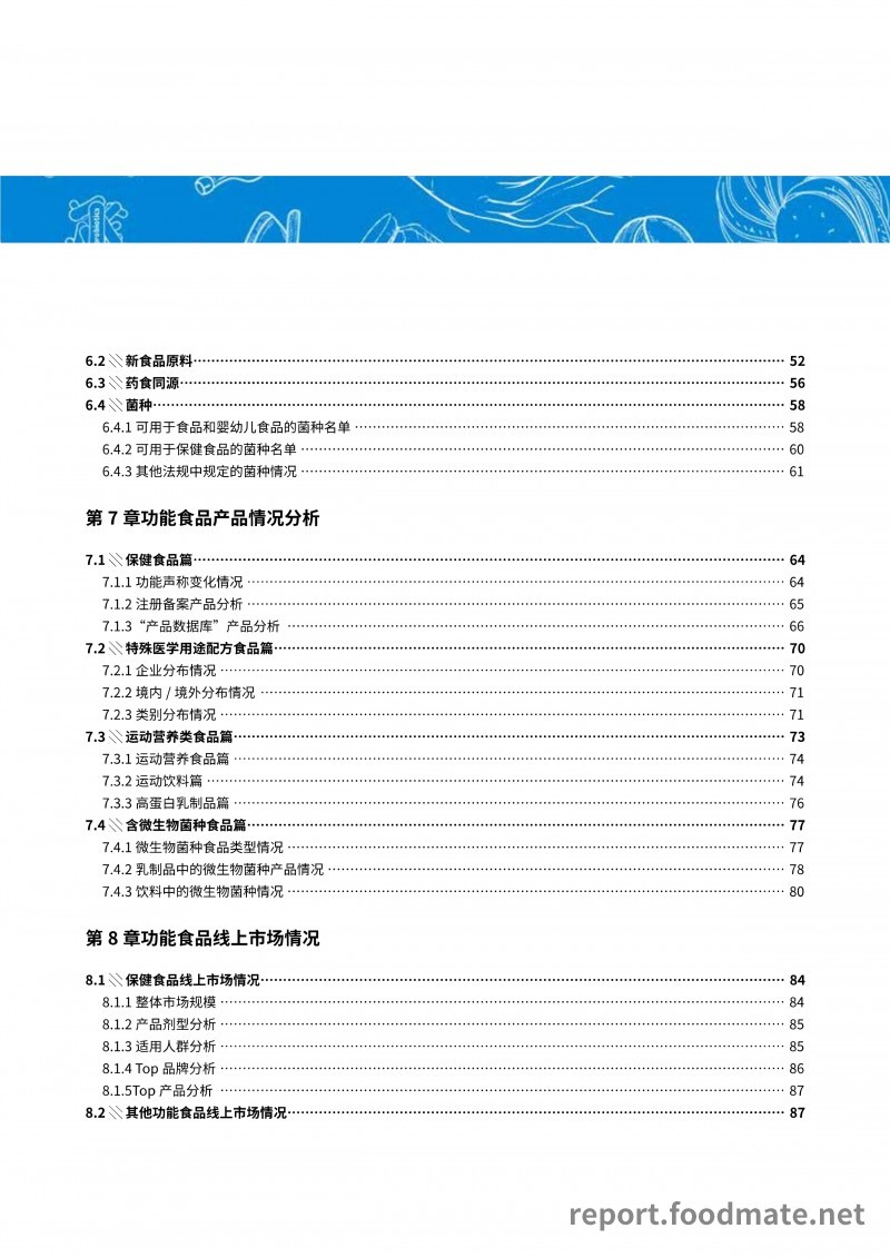 按照我国目前的食品安全监管体制,功能食品主要包括保健食品、特殊医学用途配方食品、特殊膳食食品中的运动营养食品和其他具有一定功能性的普通食品。随着功能性成分在其他普通食品中的广泛应用,具有一定功能性的普通食品也越来越多。