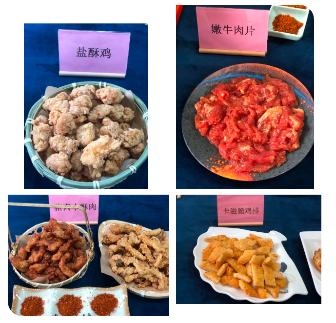 产品实操培训的内容主要包括:调理牛肉片、过油预制猪肉丝、咔滋脆鸡排、盐酥鸡、调理牛排等产品。